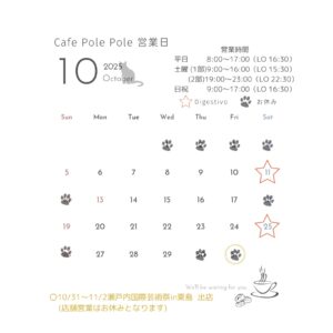 10月の営業日カレンダーです🇮🇹